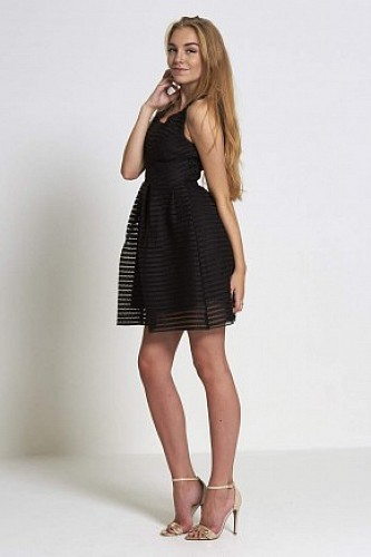 Ribbed Mesh Mini Skater Dress